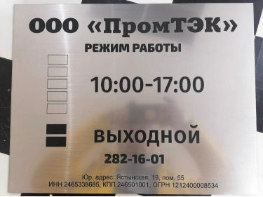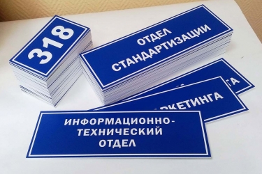 Вы можете выбрать цвет и дизайн изделия, который будет соответствовать оттенкам корпоративных цветов. Если есть необходимость в изготовлении определенной партии табличек для кабинетов или других помещений, они будут выполнены в едином стиле. Ваши клиенты больше не будут теряться среди бесконечных коридоров, а сразу найдут нужную комнату.
