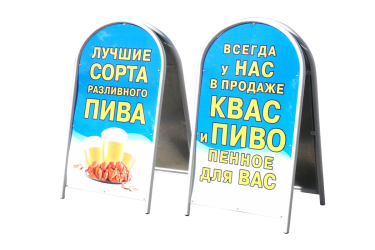 Каркас таких изделий состоит из металла и канвы. В ней использованы листы из оцинкованного железа или достаточно прочного пластика. Сверху рама покрывается специальным слоем, который защищает ее от окисления. Штендеры выглядят достаточно ярко и привлекательно, что позволяет увеличить посещаемость заведения.